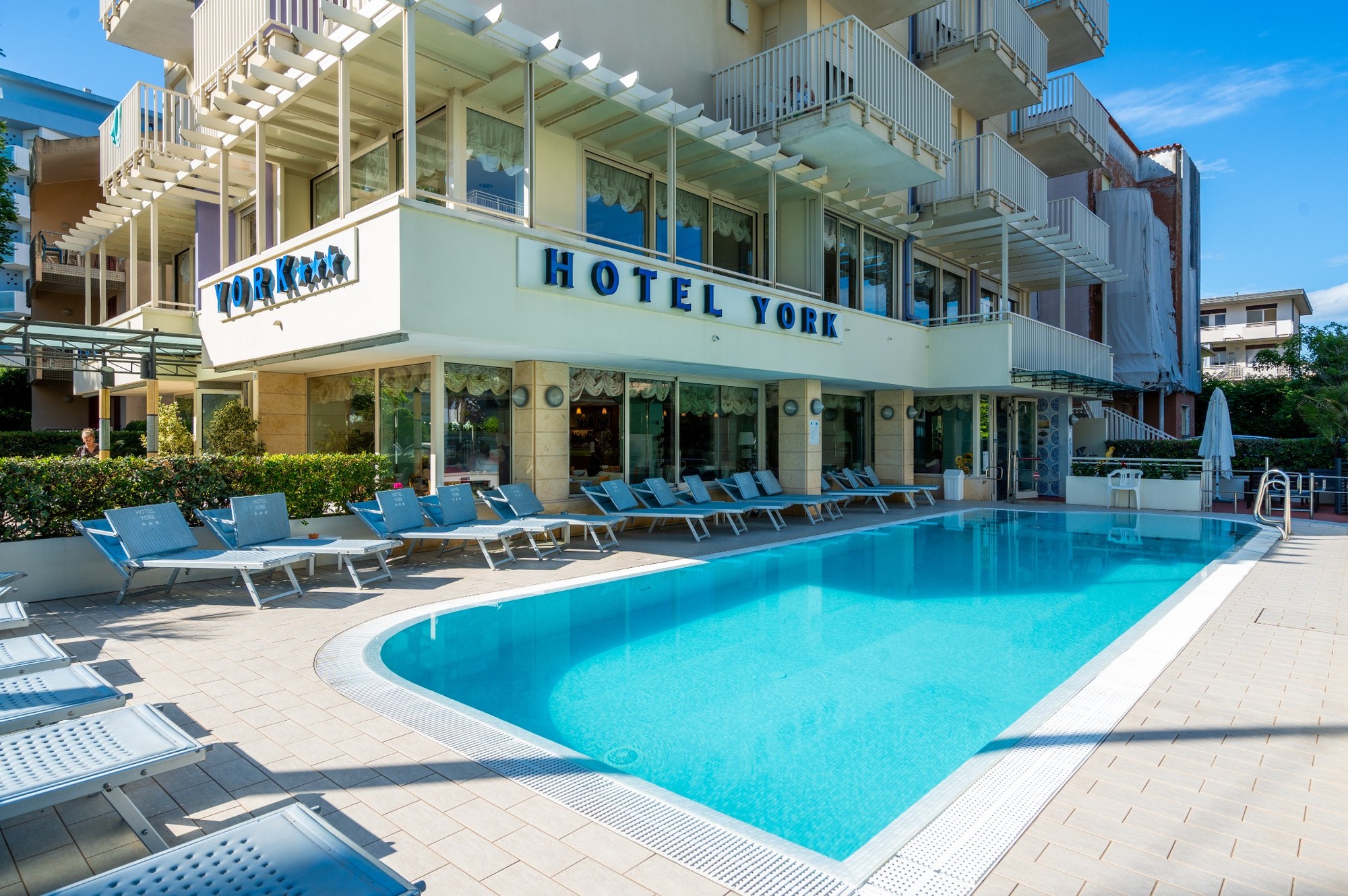 In questa sezione trovi una selezione di immagini che raccontano l’atmosfera dell’Hotel York di Riccione: gli ambienti interni, le camere, il ristorante, la piscina riscaldata e gli spazi esterni.